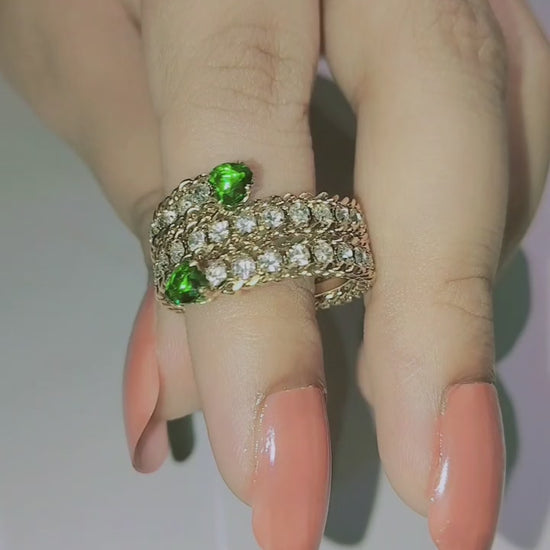 Dazzle and impress in Pakistan with our magnificent Full Diamond Multi-Layer Ring, available with accents in two captivating colors. This luxurious ring boasts multiple intertwined bands entirely encrusted with brilliant, sparkling simulated diamonds, creating an opulent, layered effect. Choose between designs featuring vibrant emerald-green stones or classic clear stones to perfectly match your style. Crafted from durable stainless steel and richly 18K Gold Plated, this ring is completely hypoallergenic and reliably waterproof, ensuring comfortable wear and brilliant, tarnish-free shine. A true statement piece for any special occasion in Pakistan.